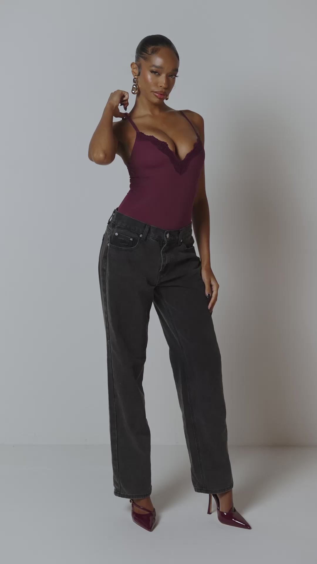 KYLIE WINE SCULPT LACE BODYSUIT
