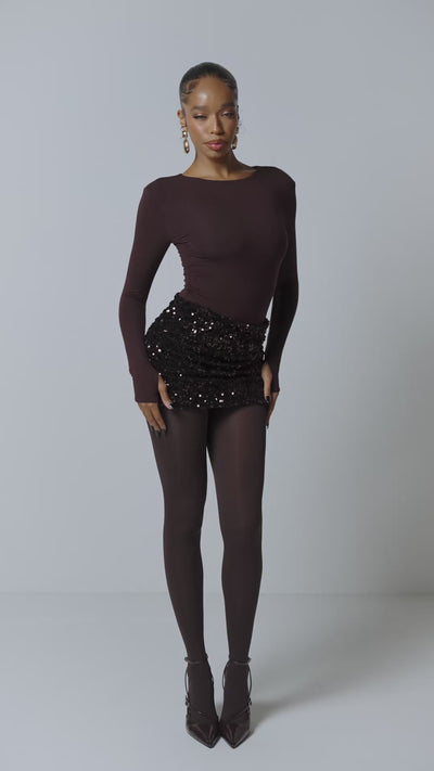 NADA SEQUIN ESPRESSO MINI SKIRT